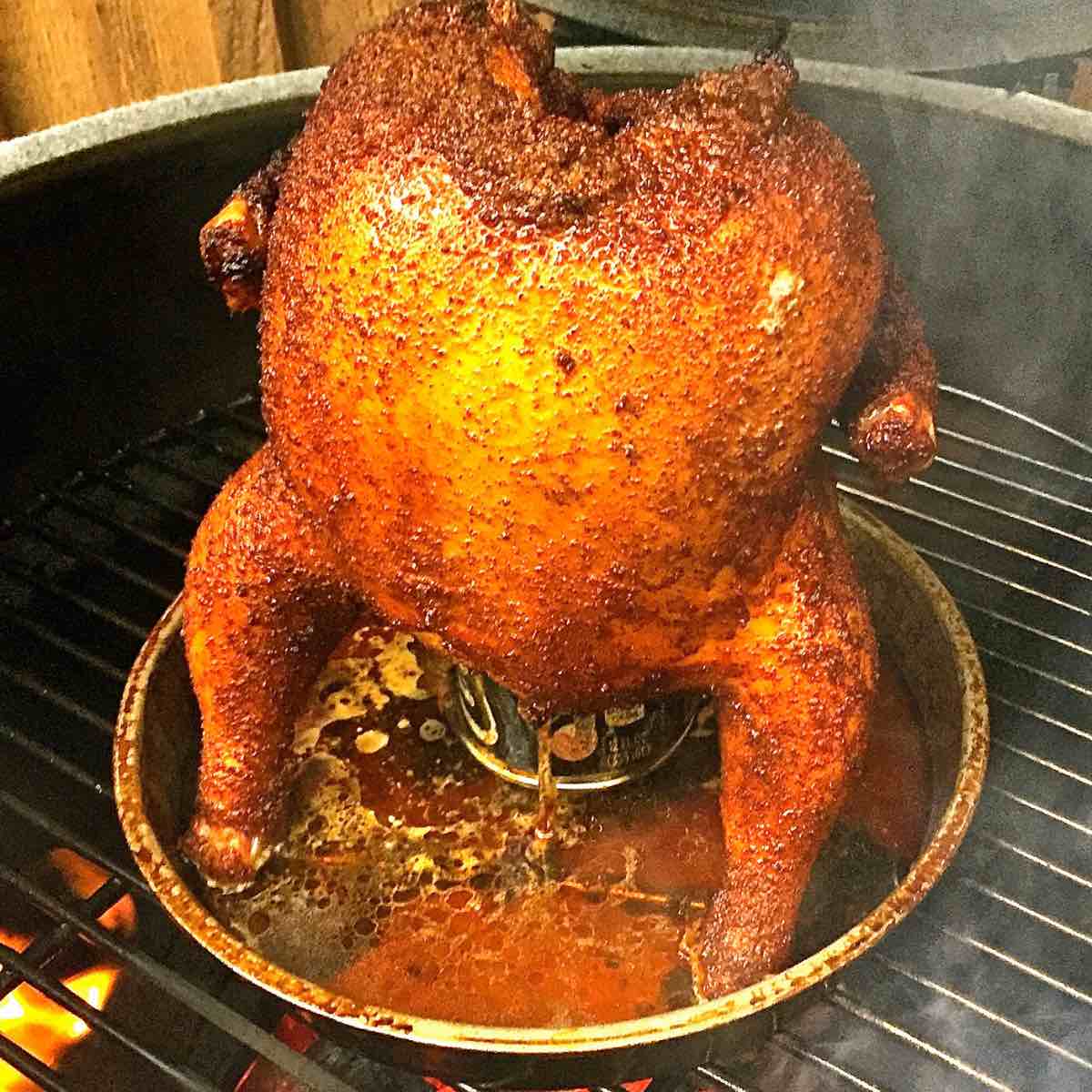 Grillet øl-kylling med urter og hvitløk (Beer can chicken)